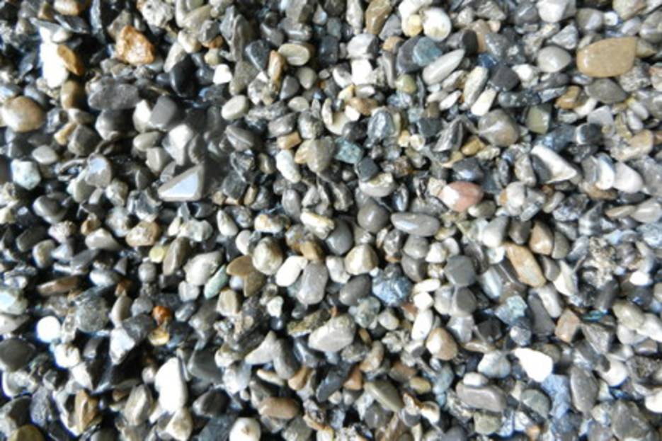 Graviers silico-calcaire gris aux formes arrondies de différents calibres :